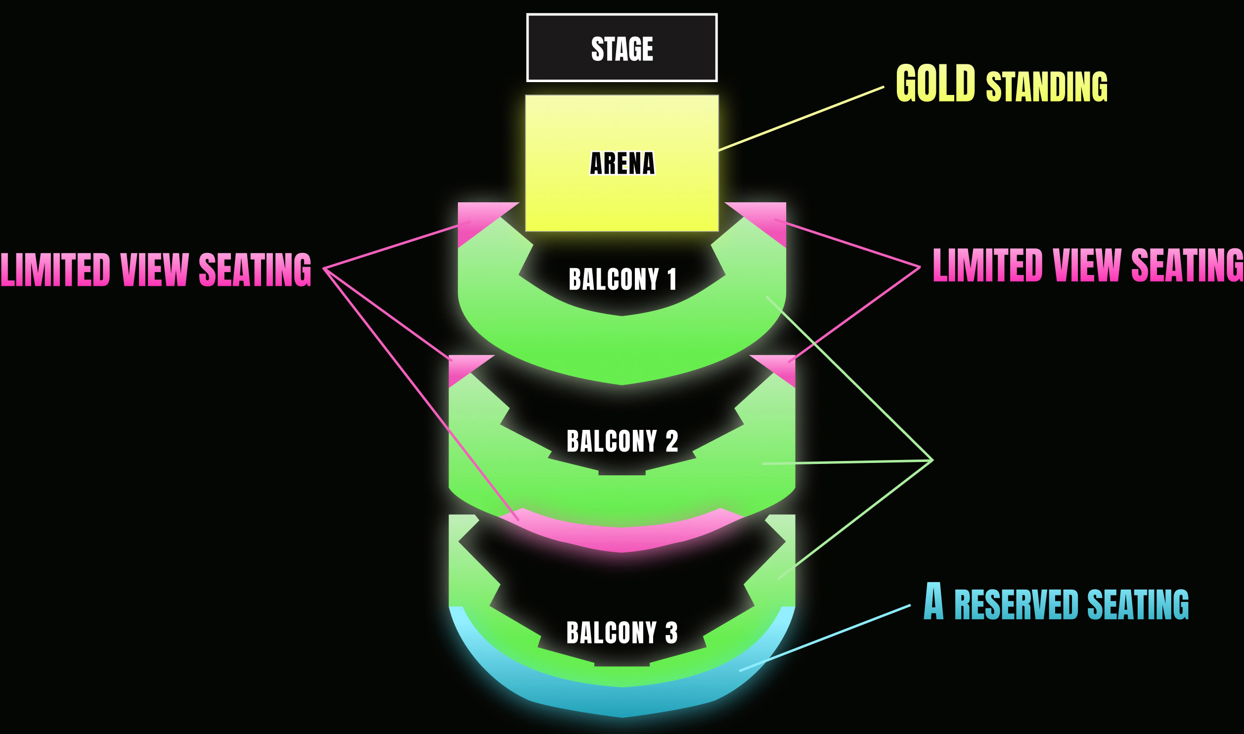 *Please note that Limited View Seating may have obstructed views of the stage and some effects due to equipment setup.